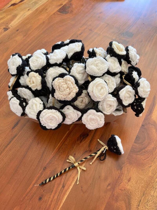 Deze gehaakte roos kent een lang leven, en is bedoeld om nog net ietsje meer troost en blijk van medeleven te geven aan de personen die met een verlies geconfronteerd zijn.